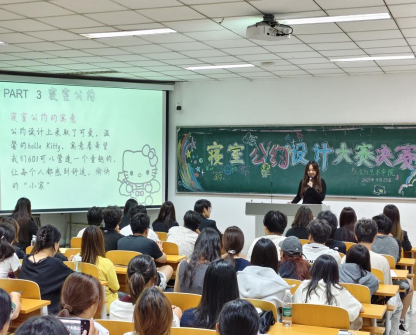 回溯整个活动,从 9 月 13 日人文与艺术学院学生会办公室、学习部发布通知开始,25 级萌新们就带着对寝室生活的期待行动起来,寝室长牵头召集室友,你负责画插画、我负责定规则、他负责排值日表,都在井然有序地进行;一份份公约中,字里行间满是想和室友好好相处的真诚;决赛现场PPT 里的每一张图片、分享时的每一个笑容,都让寝室公约变成一群好朋友共同守护 “暖居” 的承诺。