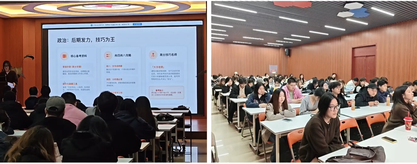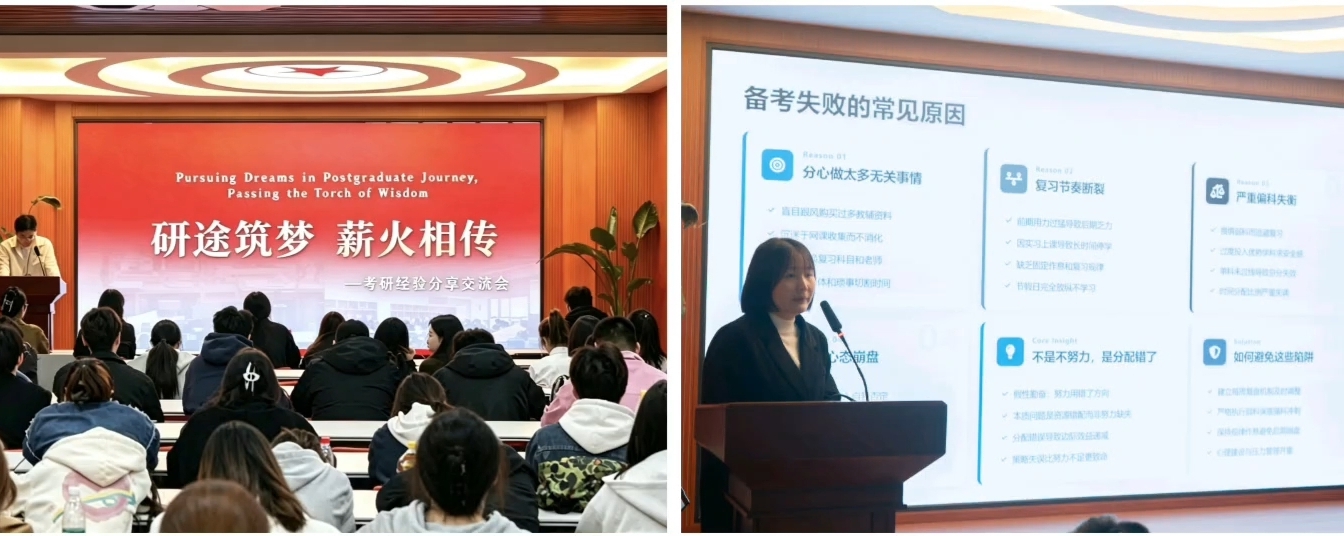 本次分享会内容充实、干货满满,针对性与实用性兼具。考研经验分享环节,三位成功上岸的优秀学子倾囊相授。分享过程中,唐莹莹以智能科技与产品创新为切入点,紧扣“初试优先、复试准备”的核心思路,细致拆解考研全流程备考规划,详细讲解各科高效复习策略;朱飞结合报考专业的特色,分享专属学习方法、时间管理技巧与备考心态调整心得。贾芮分享艺术类学科的理论课学习方法,耐心回应同学们的各类疑问。三位同学切实为不同专业学子理清备考思路。